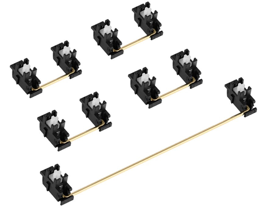 Newly designed by Durock, these stabilizers provide great stability for your large keys in addition to an elegant touch with the gold finished wires.